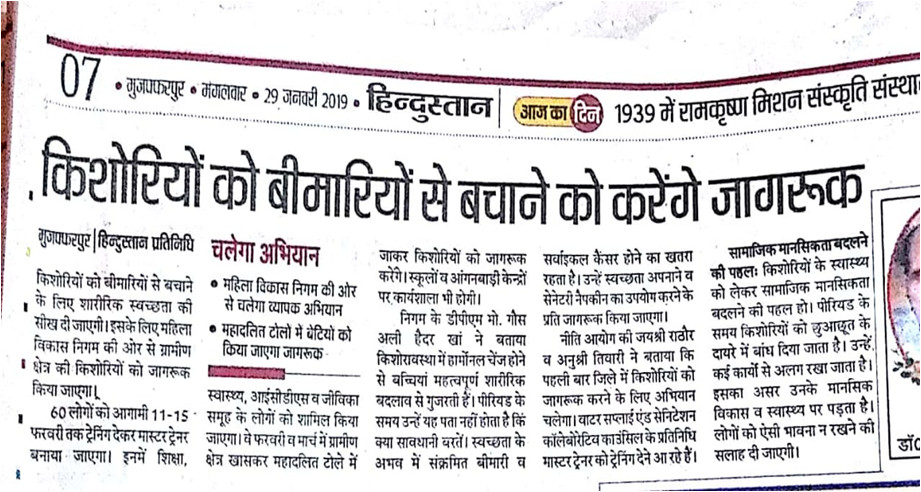News regarding our upcoming workshop on “Menstrual Hygiene”